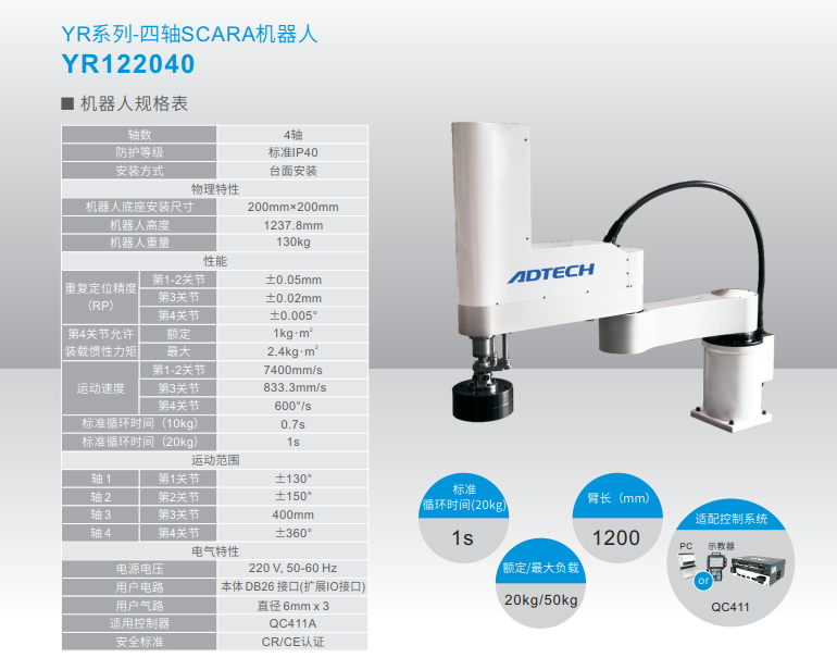 率先上市的將是型號(hào)為YR122040的產(chǎn)品,其載荷能力觸達(dá)SCARA行業(yè)天花板,而并未以犧牲速度、精度為代價(jià),這兩項(xiàng)核心性能比起AR系列不遑多讓,而與同等載荷6軸機(jī)器人相比,更具有高性價(jià)比優(yōu)勢(shì)。